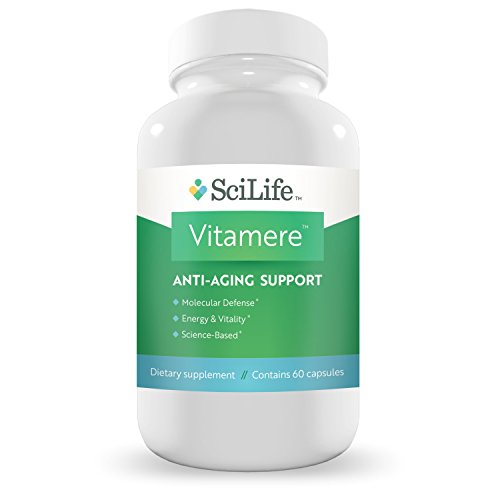 Molecular self-defense: Aging begins on the cellular level, long before we feel it or notice it in the mirror. Excessive amounts of inflammation and oxidation each give rise to the other and accelerate cellular damage. This cellular damage creates more inflammation and oxidation, resulting in a self-destructive cycle that is a hallmark of the aging process. At SciLifeTM we've developed our VitamereTM line of anti-aging vitamins and energy boosting supplements with a powerful blend of 13 nutritional antioxidants and anti-inflammatories that promote your body's natural anti-aging functions at a molecular level. Vitality and energy: An important part of longevity is simply feeling good; feeling good depends on your vitality and energy levels. The B-vitamins in our energy boosting supplements support vitality by generating energy where and when you need it. A series of biochemical reactions occur in the mitochondria (our cells' power plants), this complex process requires thiamine (B1), riboflavin (B2), niacin (B3), pantothenic acid (B5), pyridoxine (B6), biotin (B7), folate (B9), and cobalamin (B12) all of which is provided in VitamereTM supplements. Telomeres: At the ends of our chromosomes are strands of DNA called telomeres, protecting our genetic data by preventing chromosomes from coming apart and sticking to one another. Each time a cell in our body divides, telomeres get shorter, a process that has been definitively linked to the negative effects of aging. Excessive oxidation and chronic inflammation accelerates this progression and ultimately diminishes our genetic coding. However, nutrients such as vitamins C, D, E, and B, carotenoids, lutein, and lycopene have all been associated with longer telomeres. These telomere-positive nutrients are in every tablet of VitamereTM Anti-Aging Support supplements, supporting the body's natural defenses and cellular systems, ultimately boosting personal vitality, bettering health, and supporting longevity.Feature