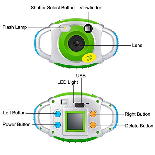 Product Description: This amazing and super-cool digital camera has been developed for kids as an educational, creative and fun tool. Furthermore, its astonishing protective and durability features put parent's minds at ease and in addition, gives the children a chance to be creative in a fun-loving way. Image Size: Format: JGEP VGA、1M、2M、3M、5M