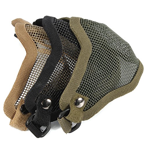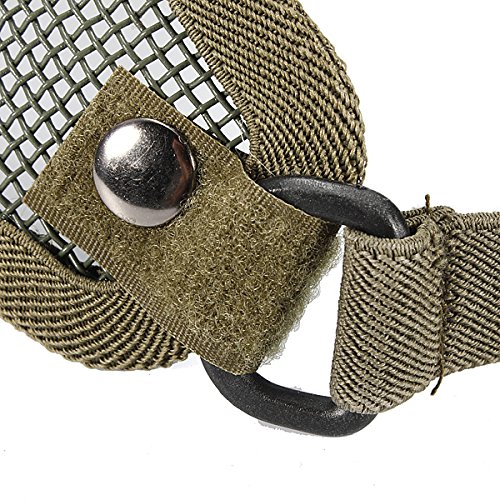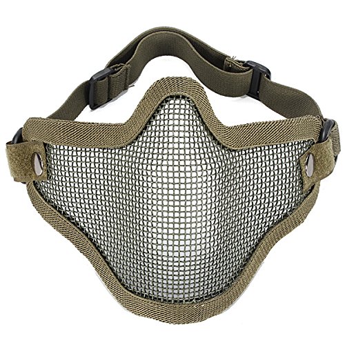 -. Binding : Sports -. Brand : MECO -. Color : army green -. EAN : 0702373799726 -. Feature : Size (approx.): 29 x 14 x 10 cm / Flexible strap on the back for adjusting size / Strong & highly resistant to high FPS airsoft guns / Mesh is fully breathable allowing air to flow through / Perfect for outdoor activity, hunting, war game and military use -. Label : MECO -. Manufacturer : MECO -. MPN : y7YcFh3gg -. PartNumber : y7YcFh3gg -. ProductGroup : Sports -. ProductTypeName : SPORTING_GOODS -. Publisher : MECO -. Studio : MECO -. Title : MECO(TM)Matrix Iron Face Carbon Steel "Striker" Metal Mesh Lower Half Mask (Army Green) -. UPC : 702373799726