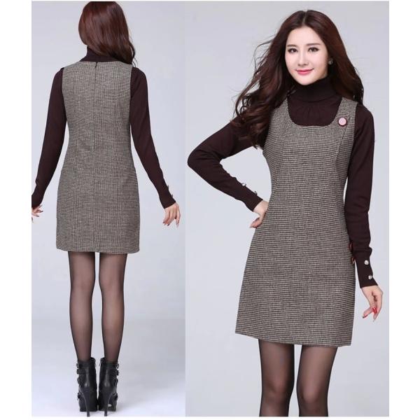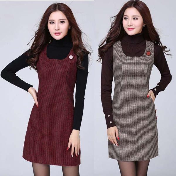 秋冬のウール素材使用のノースリーブワンピ。