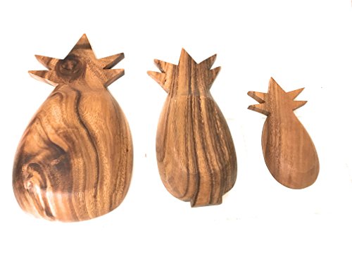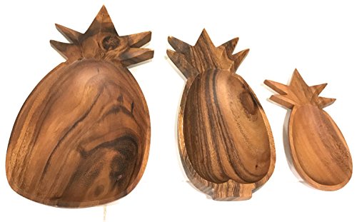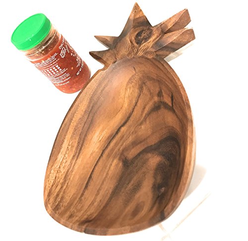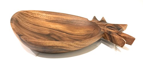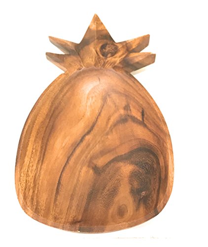 Acacia Wood Hawaiian Style Decorative Pineapple Dish Chip and Dip Kitchen Tray Bowl Large 12.5" L x 6.5" W x 2"H by SDS