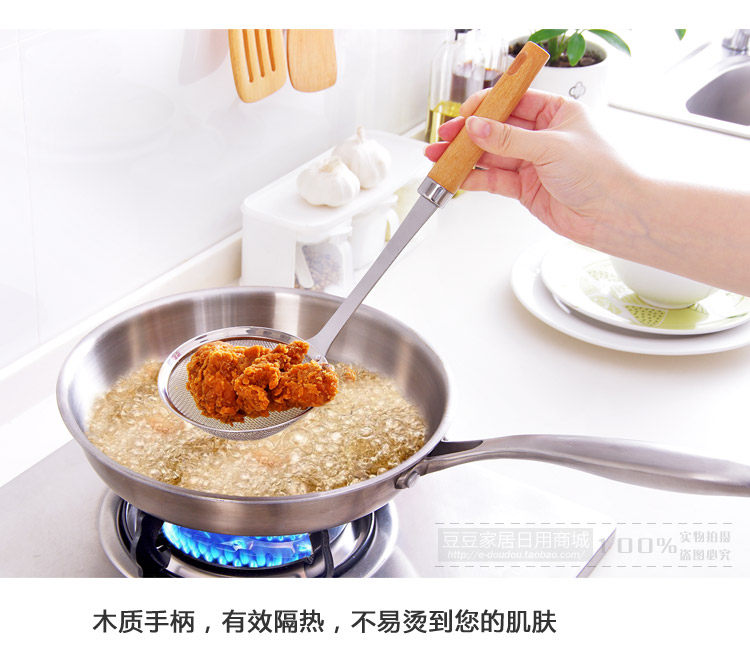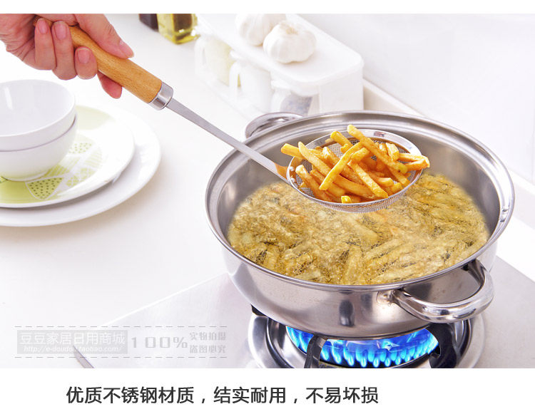 Thickened 304 stainless steel, durable, leak evenly, can be hot pot, balls, suitable for cooking and frying, oil control oil use.