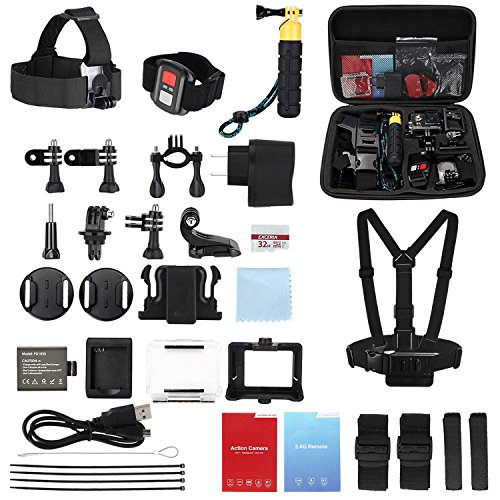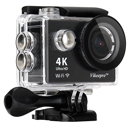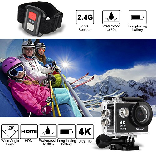 Vikeepro Action Camera 4K Waterproof Sports Camera With 170 Degree Ultra-Wide Angle Lens, Wi-Fi Wrist 2.4G, Wireless RF Remote Control, 2 Batteries and Free Accessories Kit (Black)