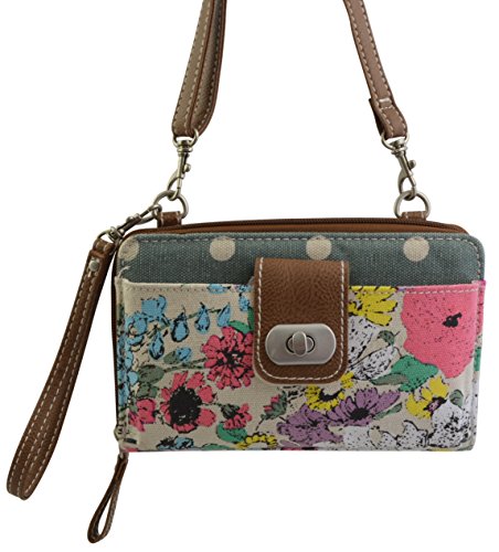 Unionbay Boho Clutch - Large Size Wallet - Crossbody Floral Boho Print on Canvas