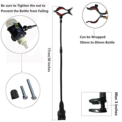 -. Feature : Works with most baby bottle sizes and types (diameter range 50mm-80mm). / You can fix the holder in baby strollers or baby bed . it's Great for Car,home,office,travel,shopping,walking, etc. / 360° adjustable & very durable, fits every bottle type. / The surface is smooth with Harmless material, doesn't hurt the baby. / Holds bottles at a correct feeding angle to enable proper air and milk flow, which will help prevent upset stomach and gas.
