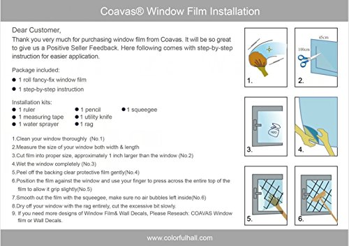 Using static cling with no adhesives,the windows films is easy to apply and removes without residue