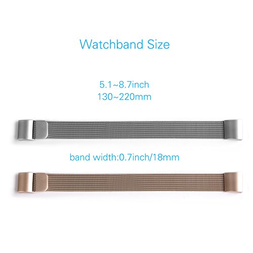 Material: Stainless steel and magnet. Net Size: 5.1"-8.7"(130mm-220mm). Suitable for: Wrist size between 6.3"-9.8"(160mm-250mm). Weight: 37g Color:Rose Gold/Rose Pink/Champagne/Silver/Black Package included: