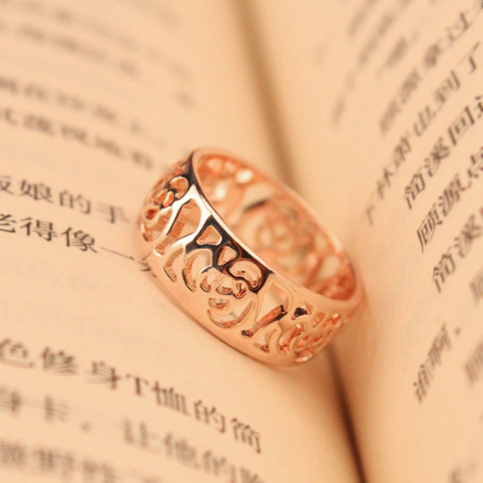 Wish you the same paragraph actress Rose Gold Wide hollow ring of roses