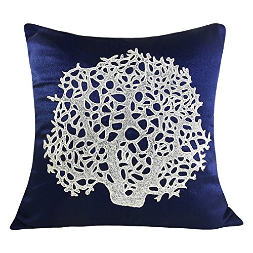 This coastal decor themed pillow cover measures 18x18 inches and is made from Art Silk Fabric.