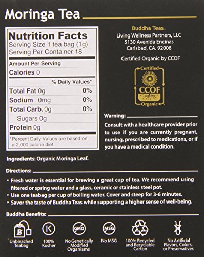 -. Title : Buddha Teas Moringa Tea, 18 Count (Pack of 6)