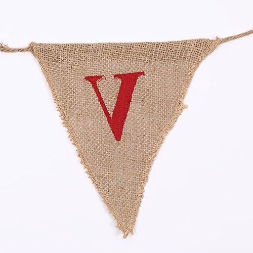 Product DescriptionColor:red,brownMaterial: BurlapTotal length:2.3 meters.Each flag size:(L*H)17*20cm0