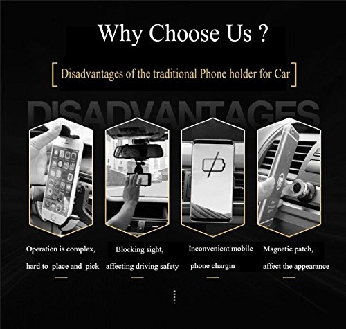 Safe Driving - Unlike other car phone mount, it is easy to install, will not affect the vision of driving; and you can charge your phone conveniently when using this phone holder.