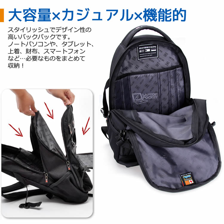 ■スタイリッシュに設計された形で、合わせるアイテムを選ばず、多目的に使えるバックパック。