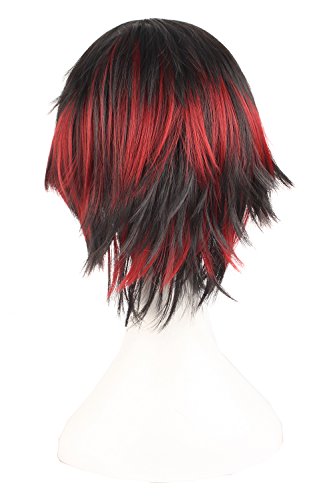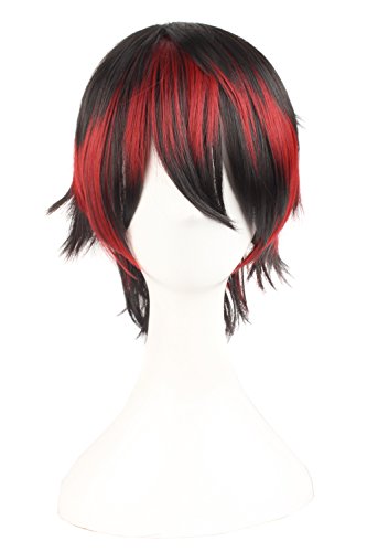 MapofBeauty Mixed Color Short Straight Cosplay Costume Wig (Black/ Red #02)