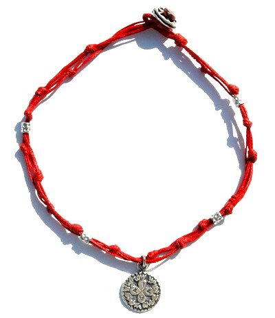 -. Feature : A beautiful red handmade anklet with Love Solomon Seal / All charms are 925 sterling silver / The Solomon Seal Amulet is approximately 0.5" in diameter. / The anklet is 11" in length