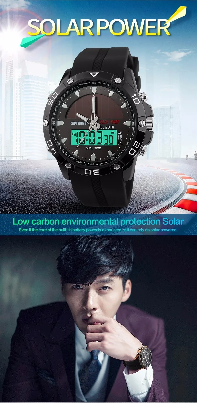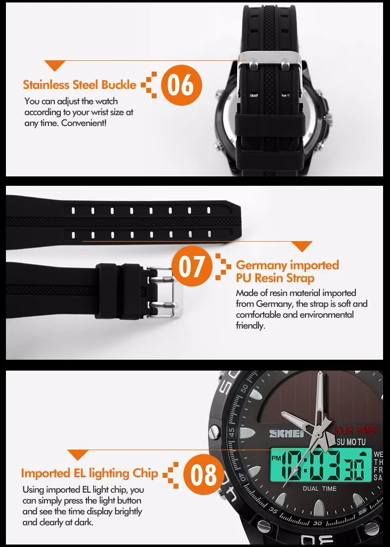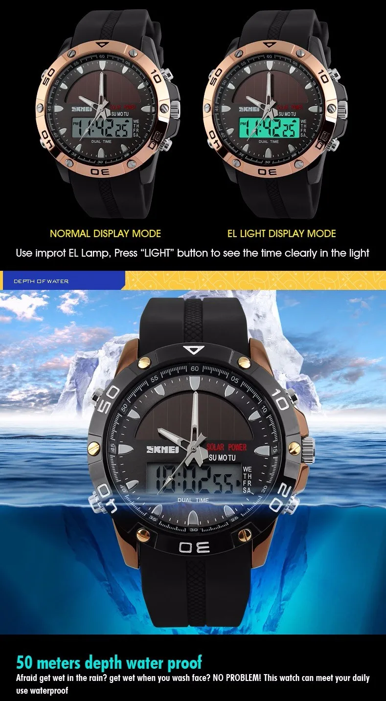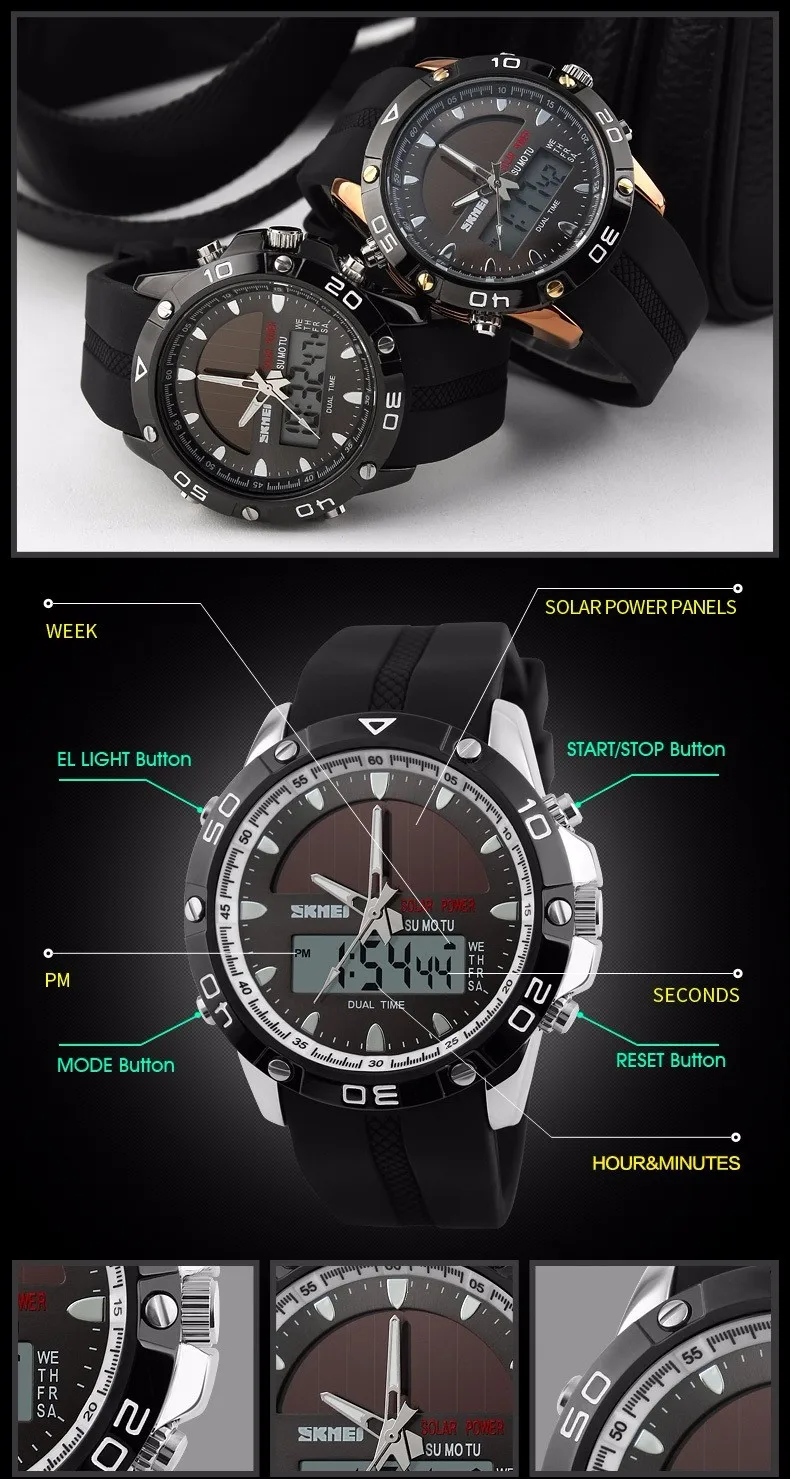 Feature:Back Light,Alarm,Water Resistant,Multiple Time Zone,Chronograph,Solar,Complete Calendar,Auto Date,LED display