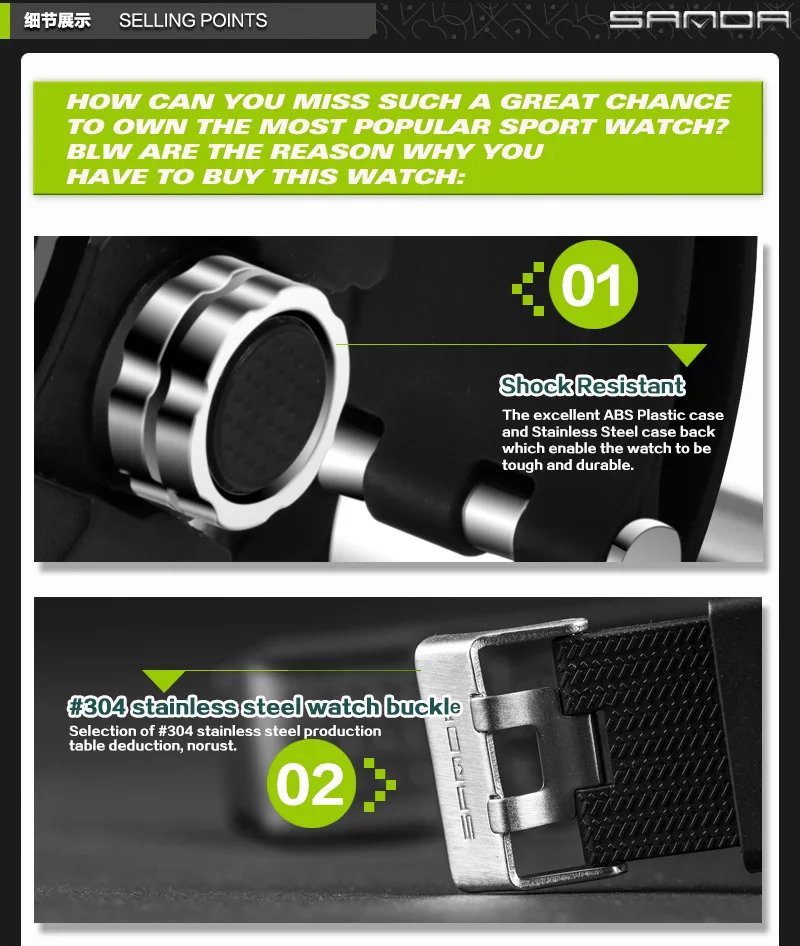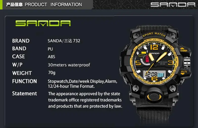 Feature:Stop Watch,Back Light,Shock Resistant,LED display,Repeater,Auto Date,Chronograph,Complete Calendar,Water Resistant,Alarm