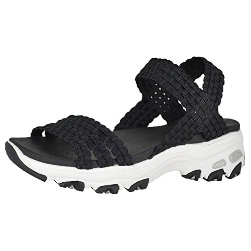Binding : Apparel Product Description Enjoy those hot weather days in sporty style and stretchable comfort with the SKECHERS D'Lites - Head Spin sandal. Soft stretchable woven-look soft fabric upper in a sporty casual comfort strappy ankle strap slide sandal with Yoga Foam footbed and comfort sole. 0