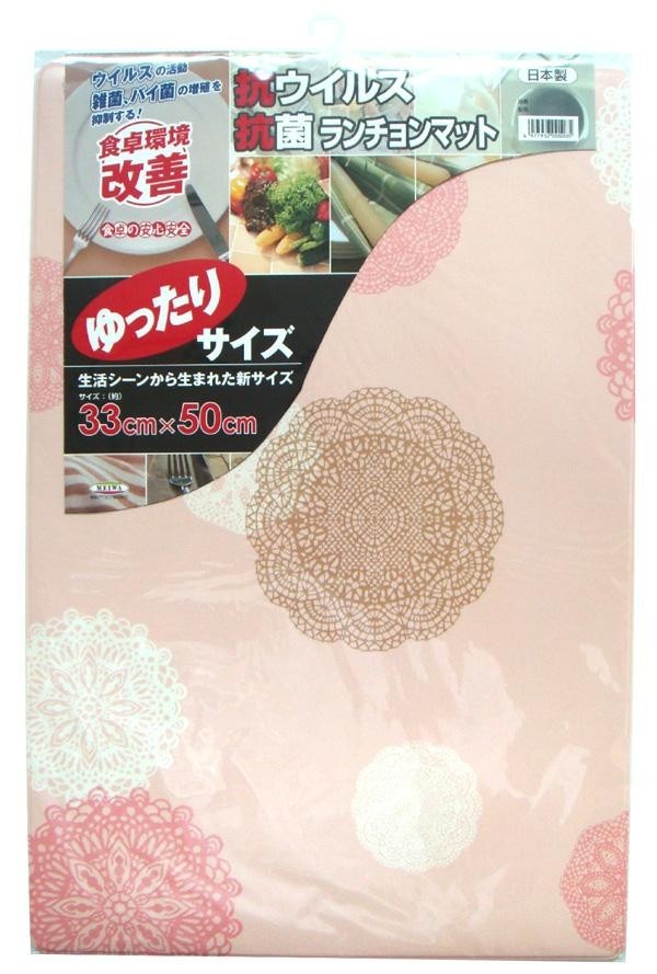 一回り大きめで余裕を持って食器を置いて食事を楽しむことができます。防水・クッション性に優れメンテナンス性も良好です! 製造国:日本 素材・材質:PVC樹脂100% 商品サイズ:33×50cm 仕様:手洗い可抗ウイルス処理 ※サプライヤー直送品 ご注文後2~3営業日後の出荷となります【商品名】ゆったりサイズの抗ウイルス・抗菌ランチョンマット 柄 33cm×50cm LV-102・ピンクP(フラワー)