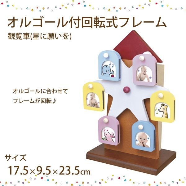 観覧車をモチーフにしたフォトフレームです。6枚のフレームが回転します。出産のお祝いにぴったりです。 |