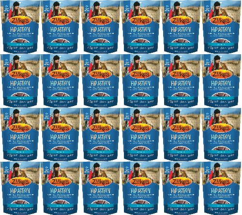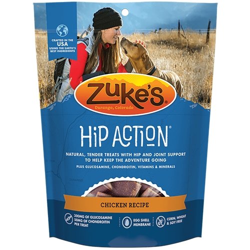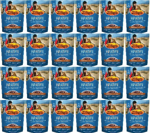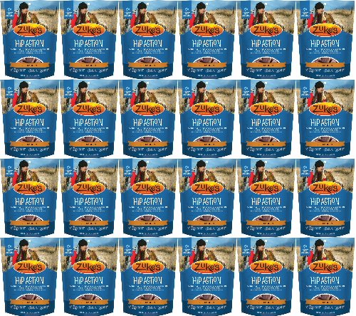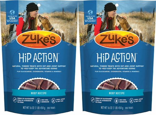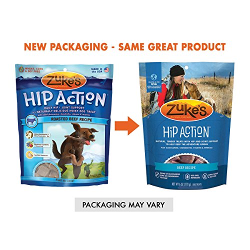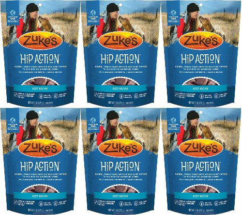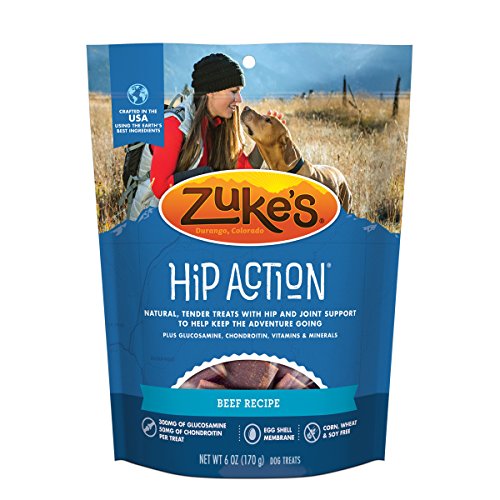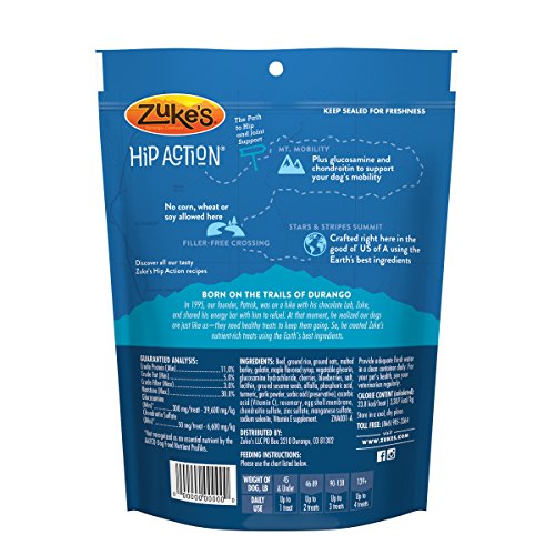 Keep your dog ready for every playful adventure that awaits him with Zuke's Hip Action Beef Recipe dog treats. Real beef is the #1 ingredient in these mouthwatering natural dog treats, and wholefood berries, tasty herbs and sesame seeds in every serving help to maintain his healthy lifestyle. With 300 mg of glucosamine and 50 mg of chondroitin in each treat, this recipe helps to support healthy hip and joint function. We formulate this recipe without corn, wheat or soy, so you can feel good about the snacks you feed to your faithful friend every day. With a savory taste and moist texture, each treat delivers the goodness your dog expects. The small pieces make it easy to select the right portion size based on his weight, and the savory flavors get him excited about snack time. We package these delicious healthy dog treats in a resealable pouch, giving you a convenient way to ensure his snacks are ready whenever he is.