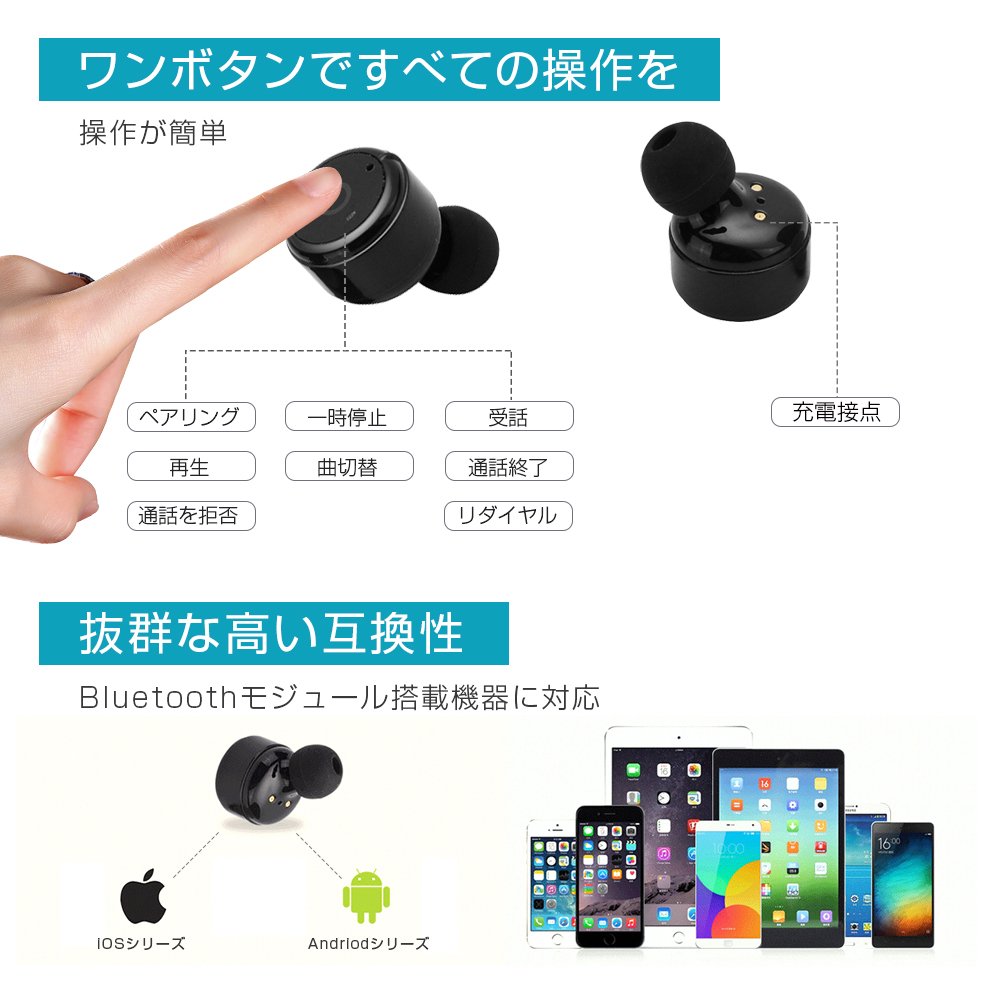 ■ シンプルで操作簡単なワンボタンヘッドセットデザイン、多機能をワンボタンに集中しています。そのワンボタンで音楽再生/一時停止、通話開始/終了/拒否/リダイヤルなどの操作をすべて実現可能です。片手でワンボタンを便利で操作できます。