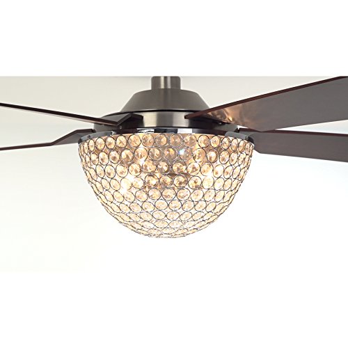 Brushed nickel finish ceiling fan from the Parklake collection features 5 chocolate finish blades. Crystal light kit adds sparkle and shine to your lounge or living area (bulbs included)
