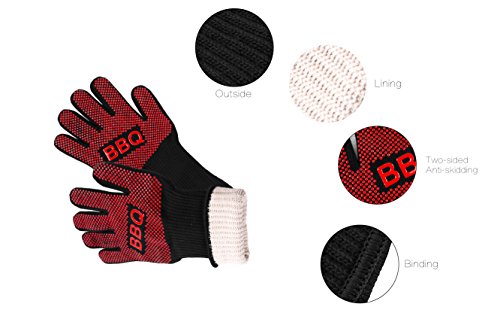 - These gloves provides comfortable cotton and allows the material to breathe so there's enough air circulation so your hands won't sweat in the summer or during high heat grilling.Machine washable for easy and convenient cleaning.