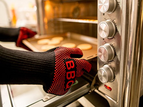 BBQ Grilling Gloves Heat Resistant Oven Mitts Heat Resistant up to 662°F(350°C)for the Grill, Oven, Fireplace,baking cakes, barbecuing ribs, frying fish or grilling steak and More