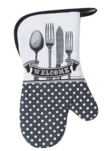 - Utensils printed oven mitt offers protection from hot pot and pan handles to 200 degrees
