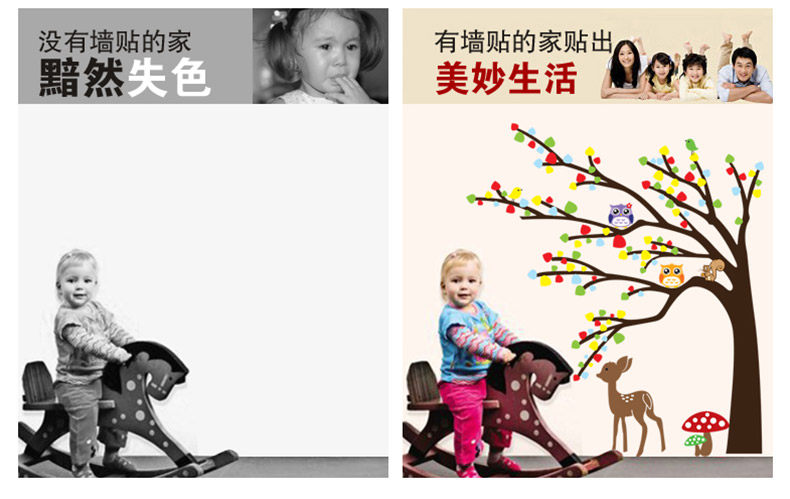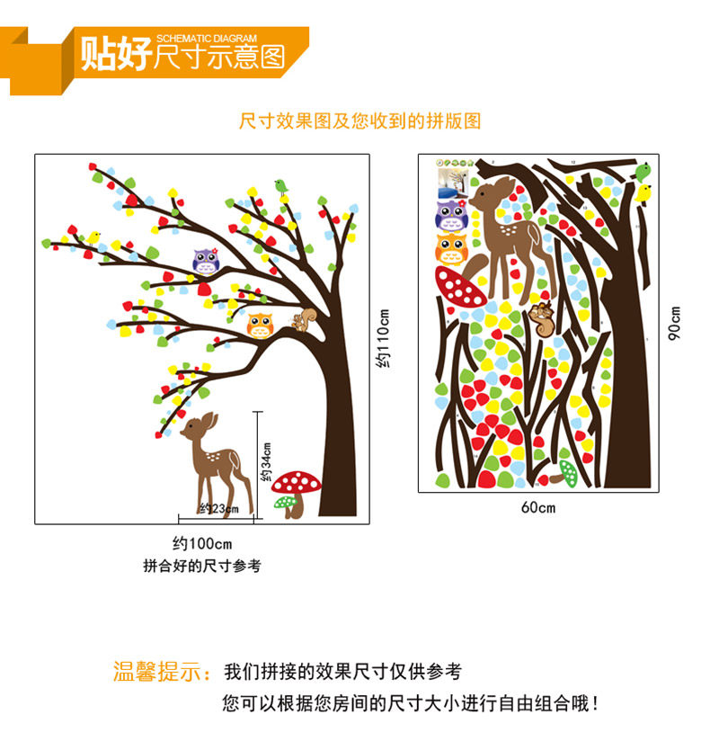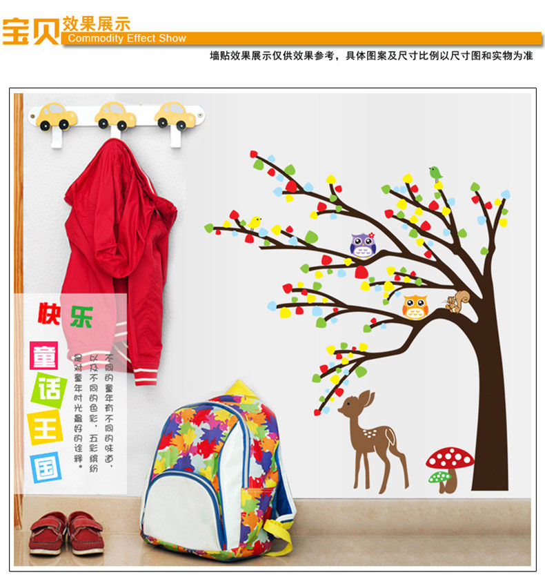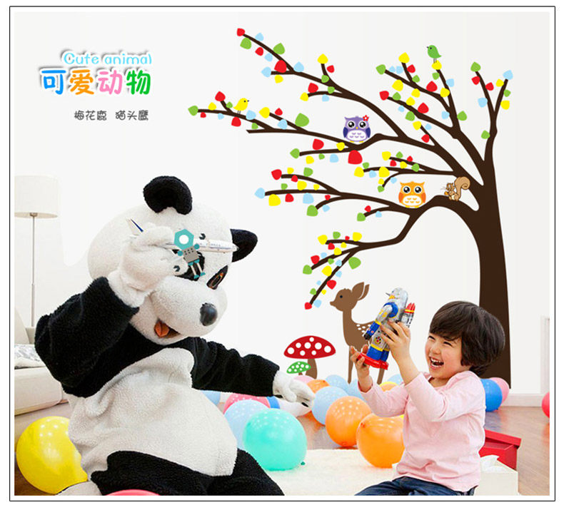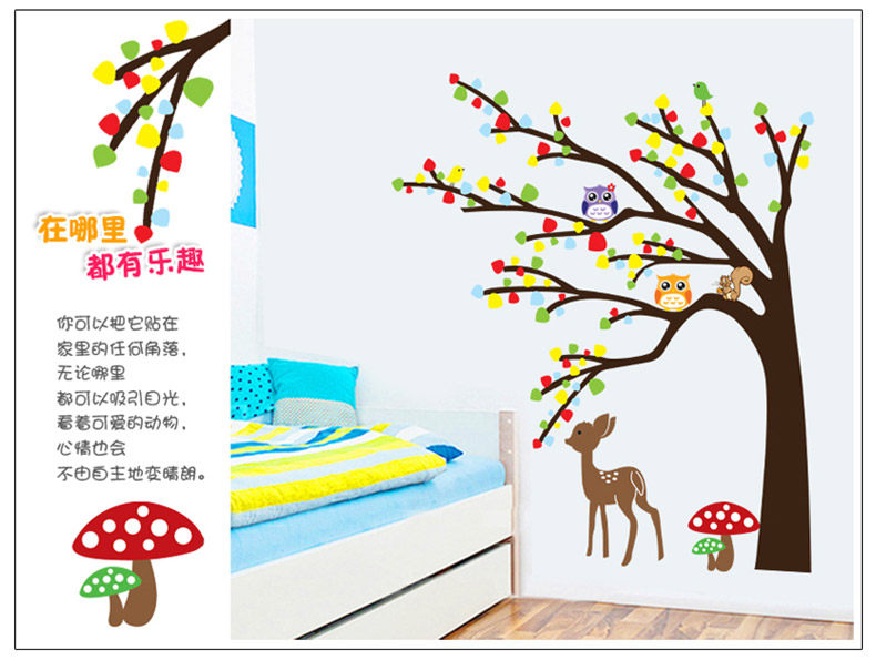 猫头鹰儿童房婴儿房小鹿蘑菇彩色卡通树幼儿园墙面装饰墙贴纸贴画