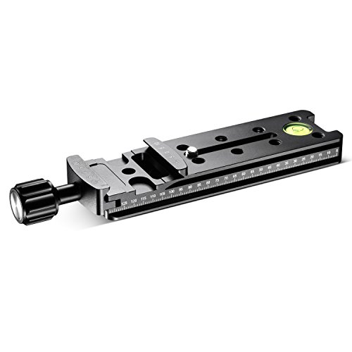 Multi-purpose rail nodal slide with Arca standard screw-knob clamp, precision laser engraved scale and spirit level, excellent for panoramic and close-up photography