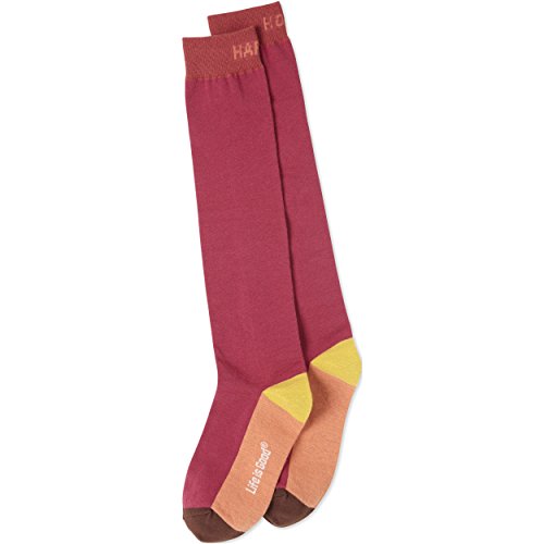-. Binding : Apparel -. Brand : Life is Good -. Department : womens -. Feature : One size fits all / Messaging under cuff / The Life is good company donates 10% of all sales to kids in need / Cotton/Nylon/Spandex -. Label : The Life is good Company -. Manufacturer : The Life is good Company -. ProductGroup : Sports -. ProductTypeName : OUTDOOR_RECREATION_PRODUCT -. Publisher : The Life is good Company -. Studio : The Life is good Company -. Title : Life is Good Women's Happy Hour Color Block Knee Socks