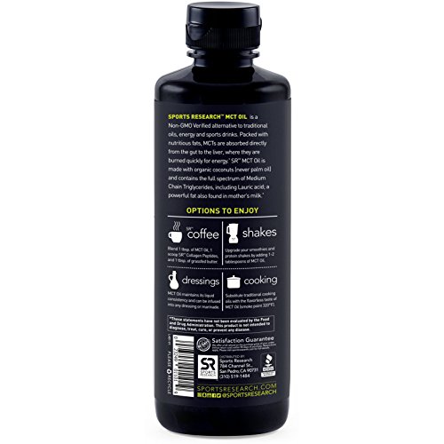 -. Binding : Health and Beauty -. Brand : Sports Research -. Feature : mct oil -. IsAdultProduct : 0 -. Label : Sports Research -. Manufacturer : Sports Research -. PackageQuantity : 1 -. ProductGroup : Health and Beauty -. ProductTypeName : HEALTH_PERSONAL_CARE -. Publisher : Sports Research -. Studio : Sports Research -. Title : Premium MCT Oil derived only from Coconut Oil - 32oz BPA free bottle | The only MCT oil certified Paleo Safe and registered by the Vegan Society. Non-GMO and Gluten Free.