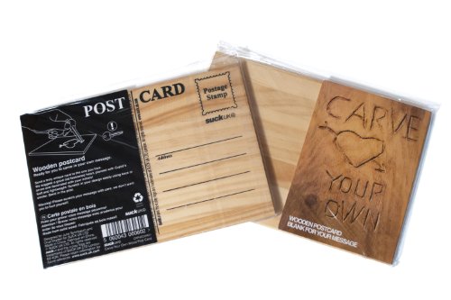 -. Binding : Toy -. Brand : Suck UK -. EAN : 5000234038072 -. Feature : Measures 150 x 105 x 5 mm / Use a key to scribe a message / No need for an envelope / Pine Wood / Rub down and resend -. IsAutographed : 0 -. IsMemorabilia : 0 -. Label : Suck UK -. Manufacturer : Suck UK -. Model : SK CARVECARD1 -. MPN : SK CARVECARD1 -. NumberOfItems : 1 -. PackageQuantity : 1 -. PartNumber : SK CARVECARD1 -. ProductGroup : Office Product -. ProductTypeName : TOYS_AND_GAMES -. PublicationDate : 2011-11-30 -. Publisher : Suck UK -. Studio : Suck UK -. Title : SUCK UK Carve Your Own Postcard