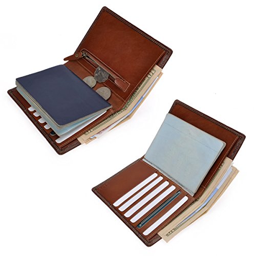 -. Feature : Good Material: Vegetable tanned (eco-friendly) genuine leather and finest stitching. The quality travel wallet will last you for a long time / Perfect Size: 4.5 X 5.9 inches / 11.5 X 15 cm, can fit in your pocket / Two Types of Passport Wallet: One is with 1 slip pocket for passport + 1 zippered coin purse + 6 credit card slots + 1 deep & big money pocket; The other 3 slip pocket for passport + 6 credit card slots + 1 deep & big money pocket; Designed to meet different needs / Functions: Travel wallet provides storage for boarding pass, passport, credit cards, money, tickets, some important documents and coins (coins slot only for the wallet with coin pocket) / Feature: Have a pleasant journey with the lightweight and durable passport wallet that keep your carry-on essentials organized