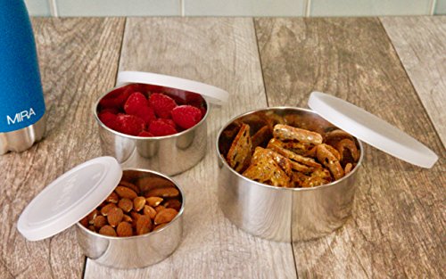 MIRA Stainless Steel Lunch Box Food Storage Containers | BPA Free, Eco-Friendly & Reusable Snack Food Nesting Containers for Kids & Adults | Set of 3 Extremely Durable: The MIRA durable food storage container set is made of unlined 18/8 food-grade stainless steel. They are the perfect for snacks or lunches for kids and adults.