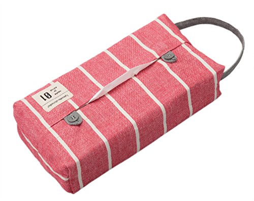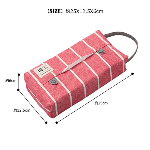 -. Title : ティッシュケース カバー カウント ボーダー レッド 25×12.5×6cm
