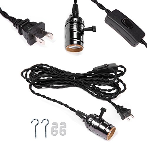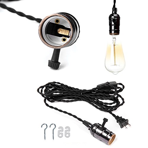SOOFOO ANTIQUE METAL SHELL EDISON RETRO PENDANT LAMP HOLDER,BLACK PENDANT LAMP KIT WITH 4.5M(14.8FT)TWISTED BLACK CLOTH CORD HANGING LIGHT FIXTURE(ON/OFF SWITCH), INDUSTRIAL VINTAGE DIY PROJECTS