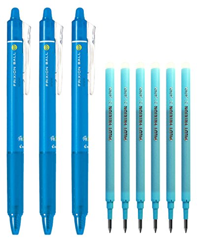 -. Title : Pilot FriXion Ball Knock Retractable Erasable Gel Ink Pens, Extra Fine Point 0.7mm, Light Blue Ink, 3 Pens & 6 Refills Value Set