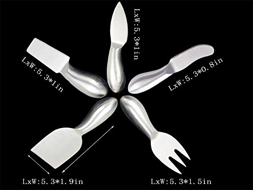 - 【EYE-CATCHING AND PRACTICALITY】Beautifully designed with a satin finish that everybody will absolutely love. All cheese tools in this complete set are made from high-quality polished stainless steel. Our knives measure approximately 5.3 inches long and they are well made, easy to use, handle and store. And its usefulness makes the knives very perfect for any event or occasion.