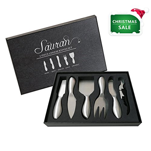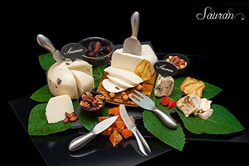 - 【COMPLETE 5-PIECE COLLECTION 】SAURAN cheese knives set consists of 5 unique cheese tools: spreading knife, a soft-cheese knife, a hard-cheese knife, and crumbly-cheese knife, and a serving fork to handle all your cheese. You can hold, cut, shave, slice, spread and serve any sharp, hard or soft cheese with ease.