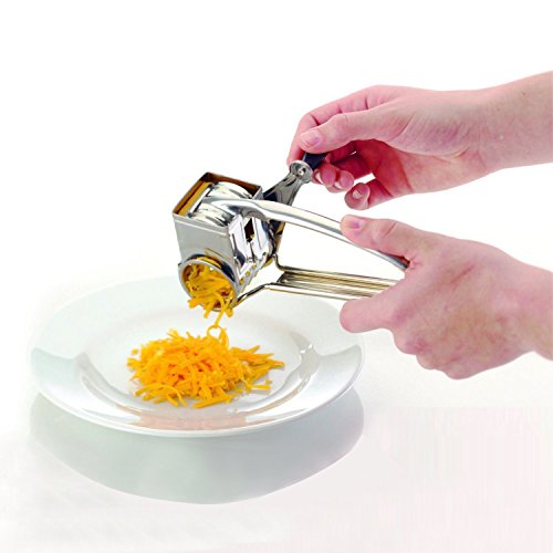- MULTI-PURPOSE - The Rotary Cheese Grater is great for grating all sorts of hard cheeses such as Cheddar, Parmesan, Parmigiano, Edam, Red Leicester. In addition this great tool can also be used to grate Chocolate, Nuts, Pistachio, Almonds, Cashew Nuts, Coconut, Cinnamon, Garlic and Ginger.
