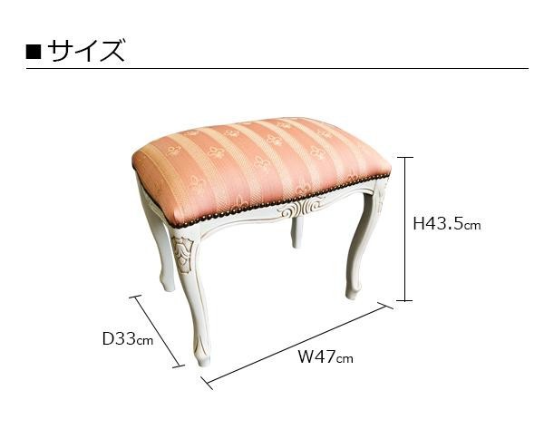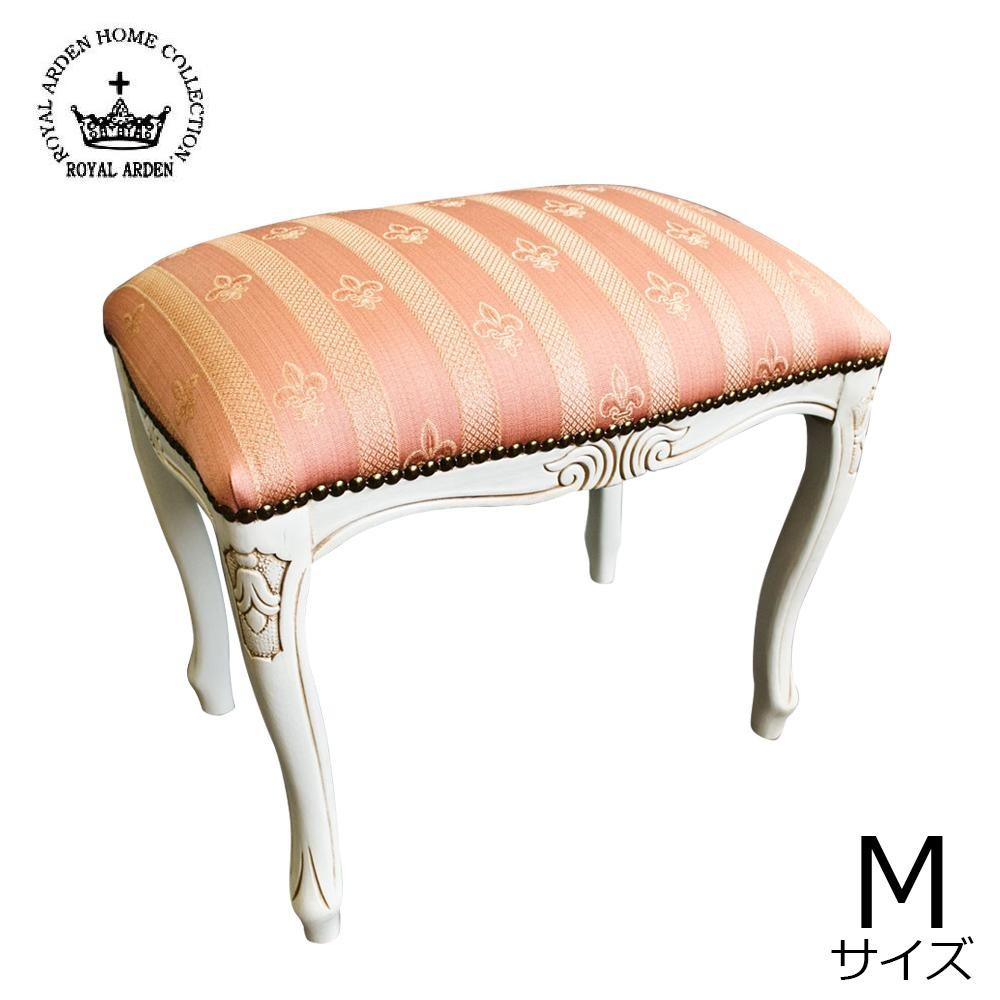 アンティーク調のおしゃれなスツールです。エレガントなお部屋にぴったり。 製造国:イタリア 素材・材質:脚:天然木ビーチ材ファブリック:ポリエステル100% ※サプライヤー直送品 ※2019年5月上旬入荷分予約受付中【商品名】ロイヤルアーデン イタリアスツール Mサイズ ピンクストライプ 白脚 51373