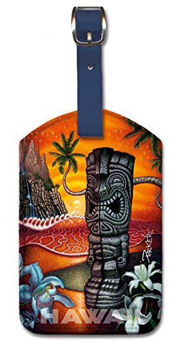 Enjoy a taste of Aloha with these beautiful Hawaiian Leatherette Luggage Tags by Pacifica Island Art. Includes a clear window on back with enclosed contact card covered by a flap, tag attaches to your luggage with a sturdy navy blue strap.