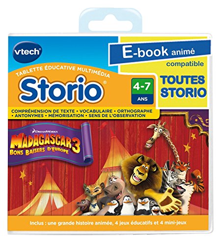 -. Binding : Toy -. Brand : VTech -. EAN : 3417762822226 -. Feature : Software Storio cuenta con 3 modos de juego: ver la historia, la lectura de juegos, y el Diccionario historia / Madagascar 3 e-book está totalmente animado con narración de la historia, voces de los personajes favoritos, animaciones vívidas y grandes sonidos y la música / Basado en la película de DreamWorks Animation 2012 "Madagascar 3" / 5 juegos de lectura y 4 mini juegos ofrecen una gran mezcla de diversión y educación -. Label : VTech -. Manufacturer : VTech -. MPN : FBA_3480-282222 -. PackageQuantity : 1 -. PartNumber : FBA_3480-282222 -. ProductGroup : Toy -. ProductTypeName : TOYS_AND_GAMES -. Publisher : VTech -. Studio : VTech -. Title : Vtech Spanish - Vtech Storio Juego Madagascar 3 - En Español
