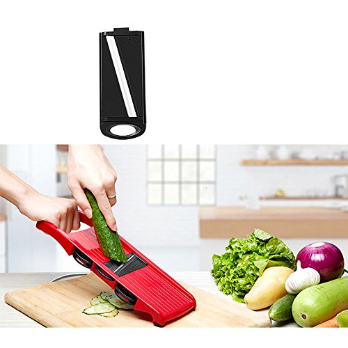 5 Interchangeable Stainless Steel Blades---We put 5 different Interchangeable Stainless Steel Blades thickness slicer settings easily adjustable, it can create 6 types of vegetable slices/julienne. A perfect gift for Moms, cooks and healthy-conscious people, making their kitchen life fun and easy.