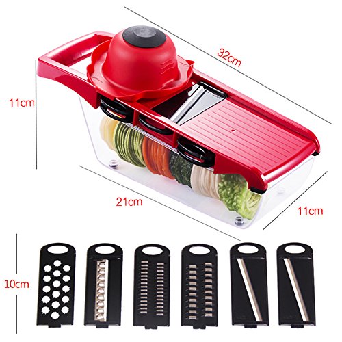 Vegetable Fruit Chopper, Mandoline Slicer Cutter, Grater & Julienne Slicer with Five Interchangeable Stainless Blades 5 IN 1 Multifuntion Kitten Tools Cutter (Red)
