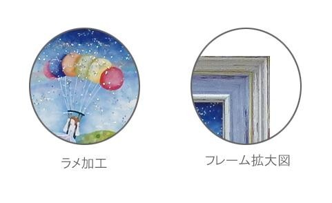 絵の表面に特殊ゲル加工、ラメチップ加工を施しています。子猫のモチーフが可愛いアートです。