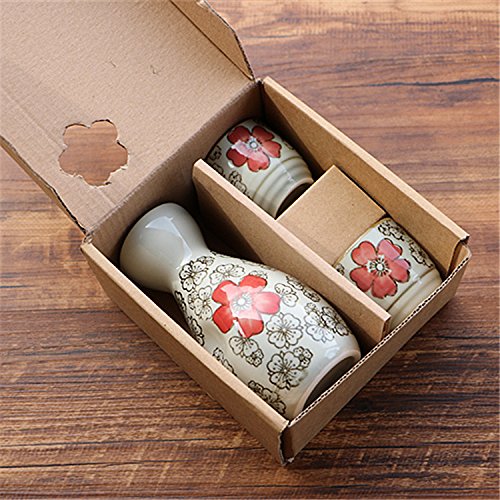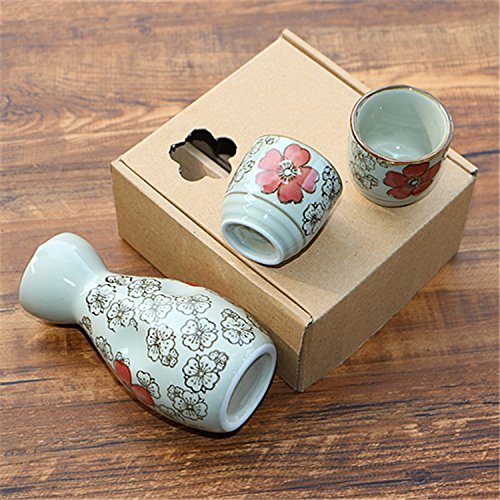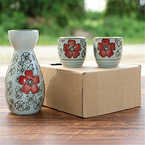 (Gift Pro)/Kitchen Dining/Tableware/DIRECT FROM USA/Gift Pro 3 Pcs Japanese Style Sake set Hand Painted Design Porcelain Pottery Traditional Cerami...